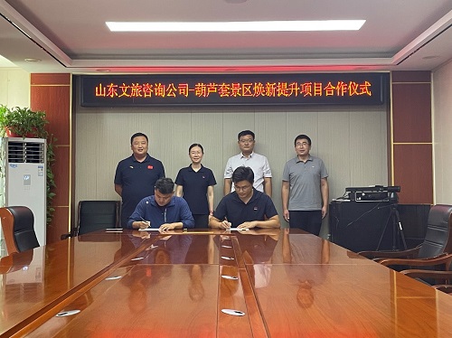 签约仪式上,隆晖旅游总经理房建,山东文旅集团协同创新中心项目总监、省旅游设计院规划设计一部部长闫祥青共同签署葫芦套景区焕新提升项目合作协议,标志着双方在葫芦套景区焕新合作上达成了共识。