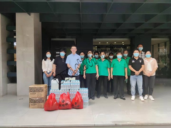 在送清凉活动中,省旅游设计院领导带着丝丝清凉和滴滴关爱为园区保洁与安保人员送去西瓜、矿泉水等消暑物品,感谢他们为省旅游设计院营造出安全、卫生、整洁的办公环境。同时,由于近期部分地区出现疫情反弹趋势,防疫物品必不可少,省旅游设计院为园区安全管理部门带去酒精、消毒液等防疫物品。