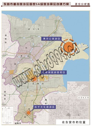 东营市在黄蓝国家战略和“转方式、调结构、增实力、上水平”的经济发展思路引导下,全市经济社会发展迅速。由于5A级旅游景区在东营市还是空白,而且景区的资源品质与基础条件已具备5A提升的条件,为争创国家5A级旅游景区,东营市政府决定将黄河口旅游区、揽翠湖旅游区和孙子文化旅游区三个景区进行整合提升,联合申报5A级旅游景区。
