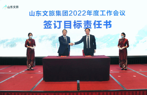 高洪雷对2021年集团各单位、各部门取得的成绩给予充分肯定。过去的一年,是山东文旅集团基础建设年。集团在省委、省政府和省国资委的坚强领导下,完成了既定目标任务,主要表现在八个方面。一是整体实力明显增强。财务指标增速良好,再次荣膺全国旅游集团20强,是山东10强产业领军企业。二是服务大局作用凸显。举全集团之力打造乡村振兴齐鲁样板,九女峰项目被省委认定为山东乡村振兴“新典型”;杭州之江朴宿民居、雪野湖“莱野”民宿投入运营;积极参与黄河流域生态保护和高质量发展,成功举办第三届沿黄九省区文旅集团高峰论坛等一系列活动。三是智能文旅上线运行。“好客山东、云游齐鲁”项目写入省政府工作报告,列入2022年省政府“稳中求进”高质量发展清单;智能化酒店建设取得新突破。四是精品文旅异彩纷呈。天蒙山景区、山6创意园、明湖100、红叶柿岩等精品项目成为旅游标杆项目和网红打卡地,集团知名度、美誉度、影响力显著提升。五是平台文旅迈出步伐。智库平台方面,设立山东省文旅产业创新研究院,与乡村振兴齐鲁样板研究院共同为文旅产业发展提供智力支持;投资平台,成立齐鲁产业投资公司,做大山东文旅投资集团,投资多个项目;规划平台方面,编制的齐长城等多个规划得到文旅部肯定。六是企业文化开始破题。举办建党百年合唱大赛等活动、征集企业标识、推出了企业之歌、集团成功实现更名,形成求同、求新、求高的企业文化。七是“基础建设年”取得实效。加大三项制度改革,实行“四个重用”“四个淘汰”;坚持五湖四海原则,持续推行职业经理人改革。八是党的建设全面加强。高标准落实“第一议题”制度,扎实开展党史学习教育、十九届六中全会精神学习,忠诚拥护“两个确立”,坚决做到“两个维护”。制定党委落实全面从严治党主体责任制度,明确50项党建任务,严格落实考核督导。