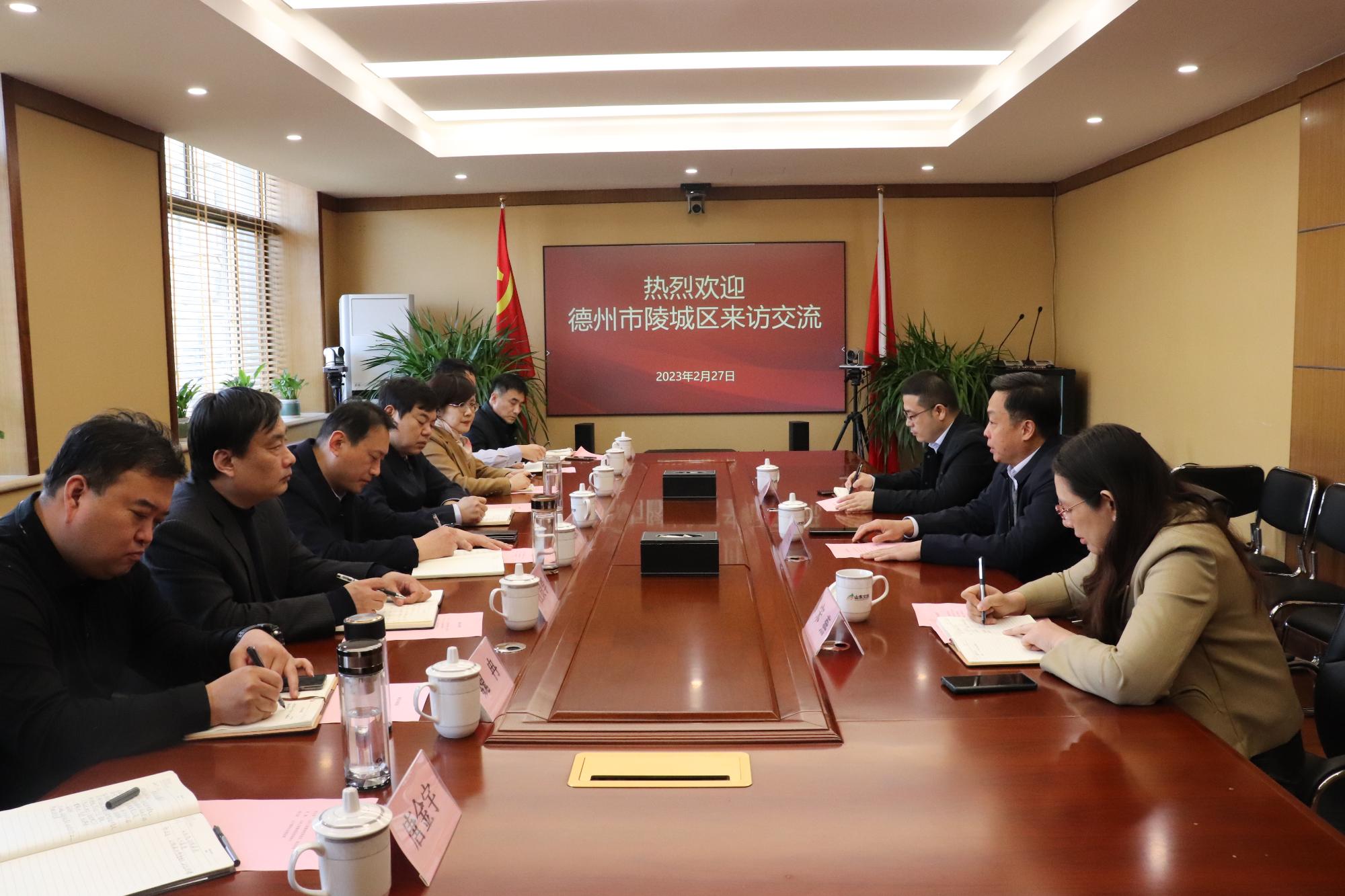 2月27日,山东土地乡村振兴集团总经理、德州市陵城区“四进”工作支队队长刘光东一行到山东文旅集团座谈交流,集团党委委员、副总经理乔卫东会见。
