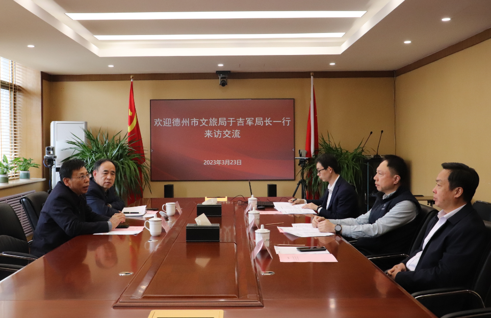 3月23日,德州市文化和旅游局党组书记、局长于吉军一行到访山东文旅集团,集团党委副书记、总经理丁艺会见。