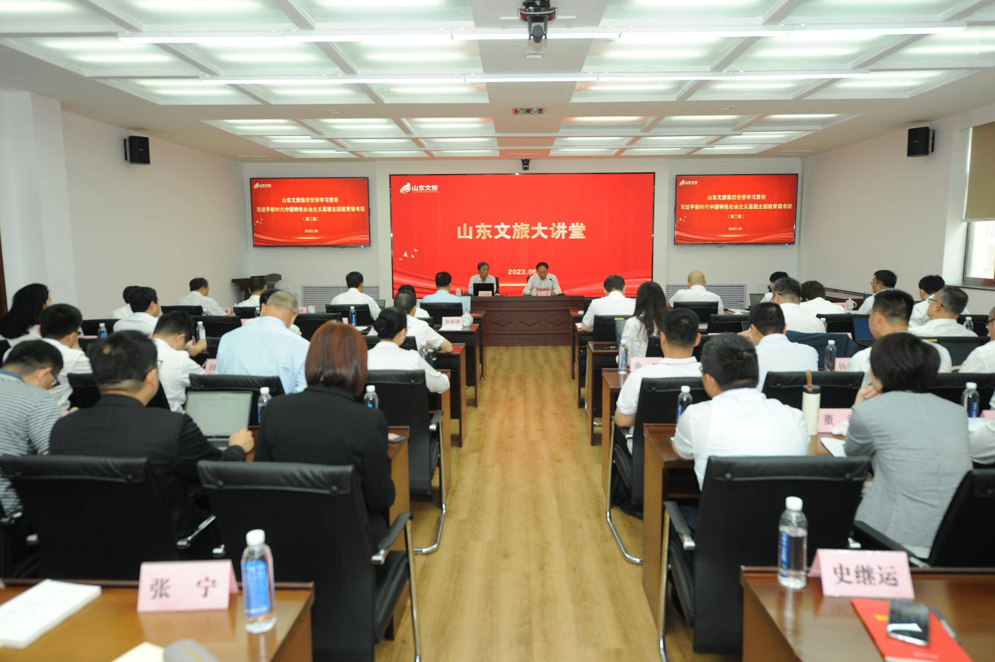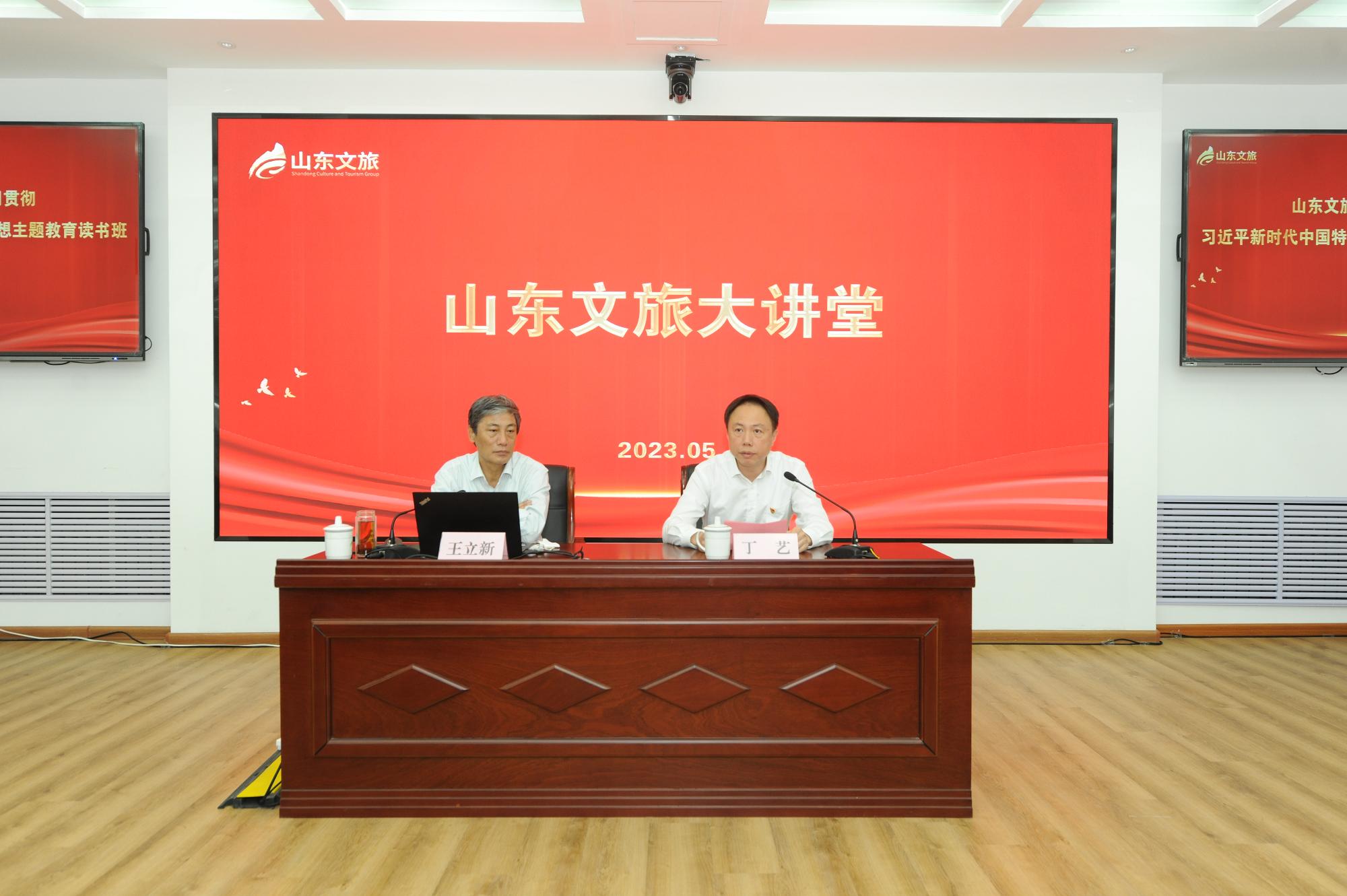 本期读书班特设山东文旅大讲堂,邀请山东省中共山东省委党校(山东省行政学院)原党史教研部主任、教授,硕士生导师王立新教授主讲,王立新教授带领学员从“自我革命——中国共产党破产执政周期率的第二个答案”和“坚持自我革命的意义”两个方面深入探讨自我革命对于中国共产党的必要性和重要性。集团党委副书记、总经理丁艺主持并作总结,集团读书班成员、集团总部中层副职和各直属企业领导班子副职等参加大讲堂。