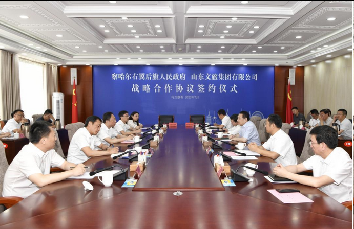 7月28日,山东文旅集团与内蒙古自治区乌兰察布市察右后旗人民政府战略合作协议签约仪式在乌兰察布市举行。山东文旅集团党委书记、董事长丁艺,乌兰察布市委书记隋维钧出席并讲话。察右后旗旗委书记崔勇介绍有关情况。乌兰察布市政府党组成员、副市长李建军主持。