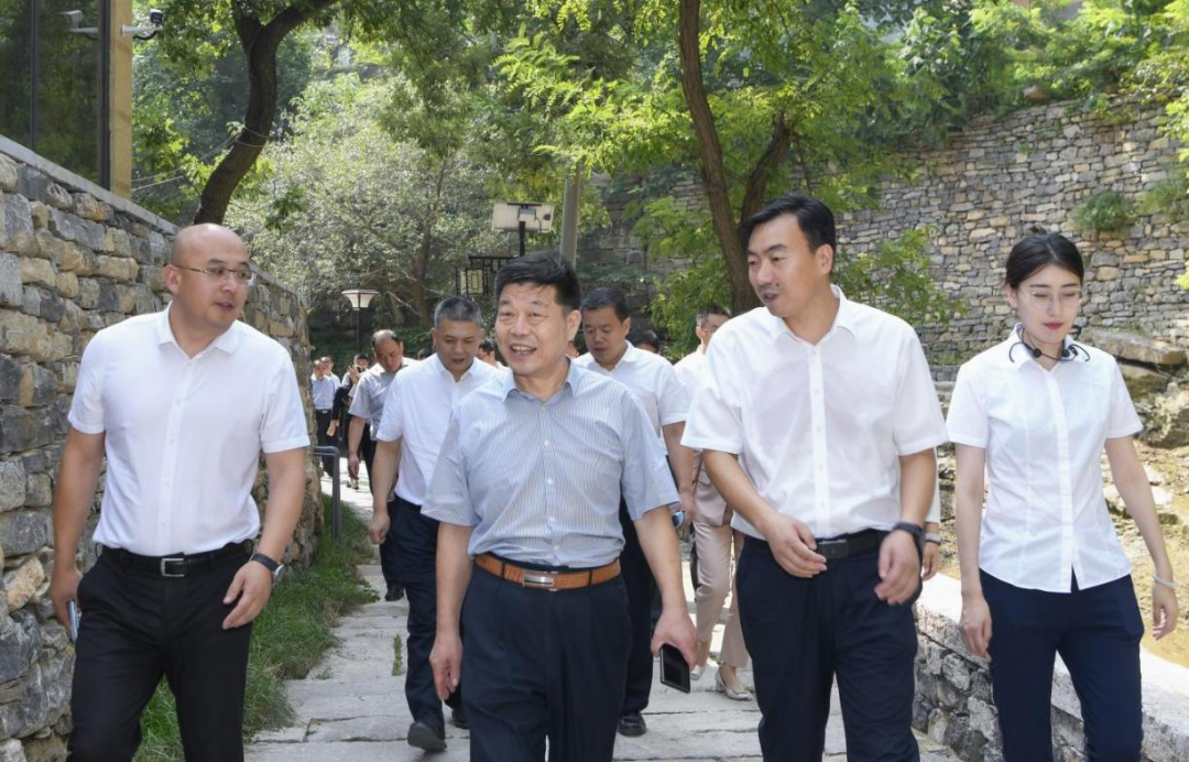 9月6日,省国资委党委委员、副主任、一级巡视员邵泽武带领省属企业助力乡村振兴调研观摩活动与会人员到山乡集团济南东泉乡村振兴项目观摩。山东文旅集团党委委员、副总经理孙超陪同。