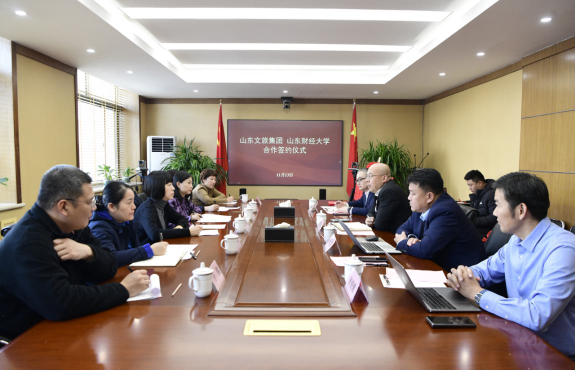 11月13日,山东文旅集团与山东财经大学举行校企合作签约仪式。山东文旅集团党委委员、副总经理孙超,山东财经大学工商管理学院院长苏昕分别代表双方签约,并共同为“校企协同育人基地”揭牌。