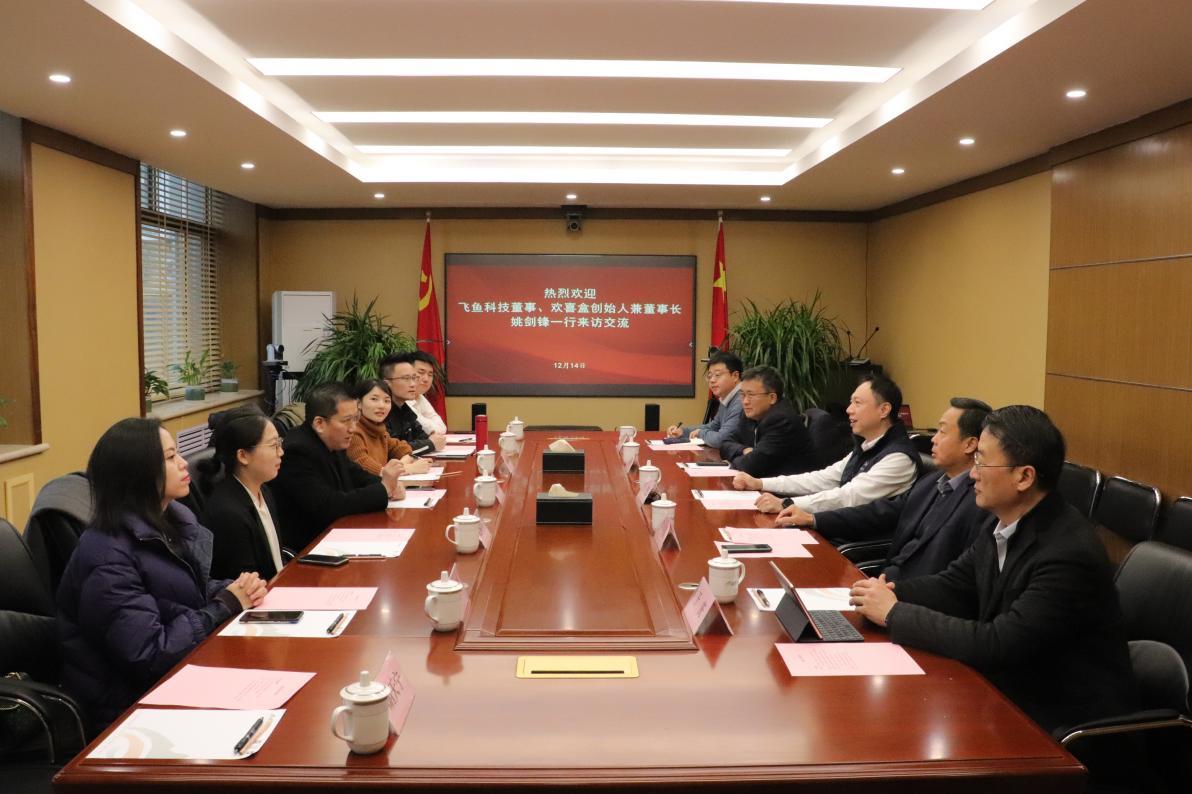 12月14日,飞鱼科技董事、厦门欢喜盒文化传播有限公司(简称“欢喜盒公司”)创始人兼董事长姚剑锋一行到访山东文旅集团,集团党委书记、董事长丁艺会见。
