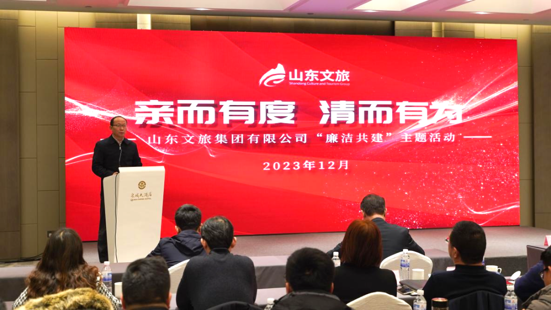 为深入贯彻落实省纪委监委《政商交往负面清单》和省工商联《清廉民企建设指导清单》,进一步优化企业营商环境和政治生态,12月20日,山东文旅集团举办“亲而有度·清而有为”廉洁共建主题活动,与供应商共商深化合作,共创清廉环境,共谋廉洁发展。山东文旅集团党委委员、纪委书记王振江出席活动并讲话。