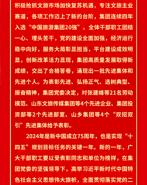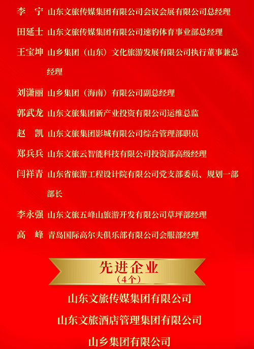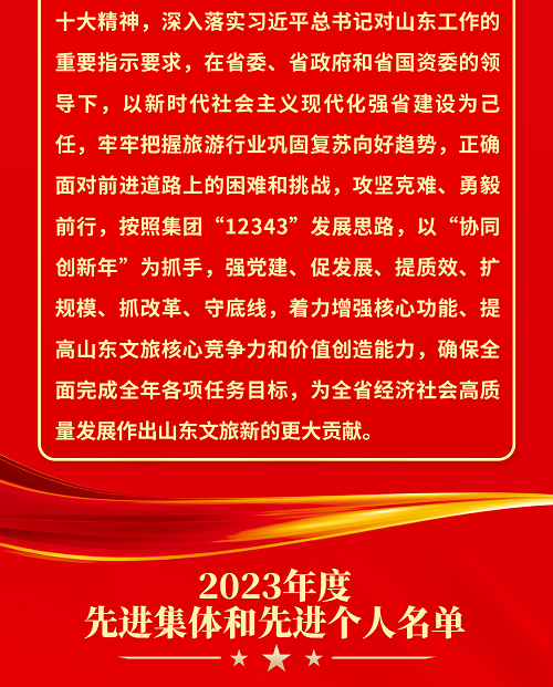 山东文旅集团2023年度先进集体和先进个人荣誉榜揭晓